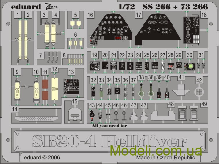 Набор фототравления SB2C-4 HELLDIVER, рекомендовано для моделей производителя Academy в масштабе 1:72