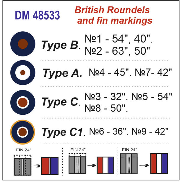 Трафарет для маркировки самолетов Королевских ВВС, Вторая мировая война в масштабе 1:48