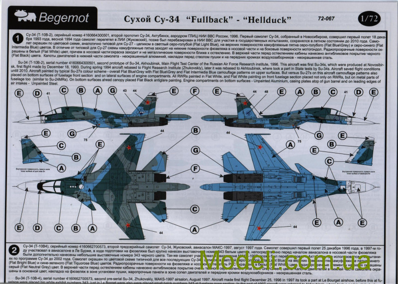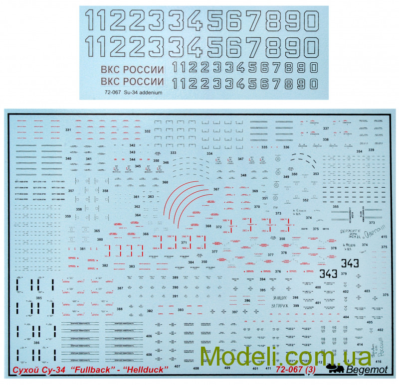 Декаль для літака СУ-34 "Fullback"-"Hellduck" в масштабі 1:72