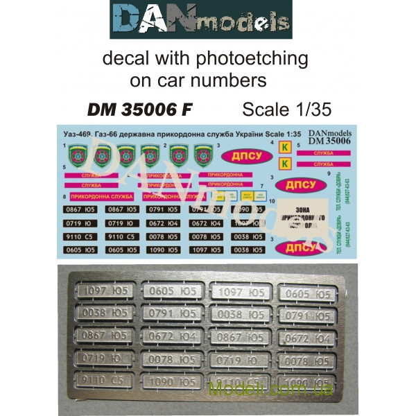 Набір деталювання: Уаз-469, Газ-66, державна прикордонна служба України (фототравлення на номери) в масштабі 1:35