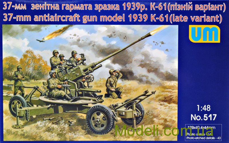 Збірна модель 1:48 К-61 37-мм зенітна гармата модель 1939 року (пізній варіант) (Unimodels 517)