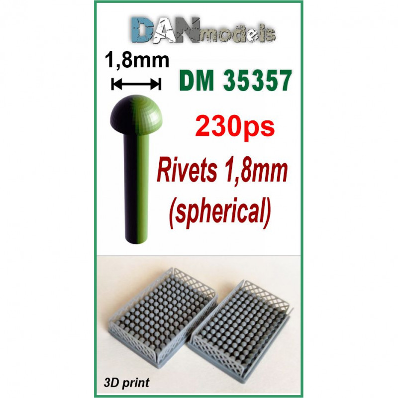 Аксесуари для діорам. Заклепки 1.8 мм (сферичні), 230 шт в масштабі 1:35 (DAN Models No.35357)